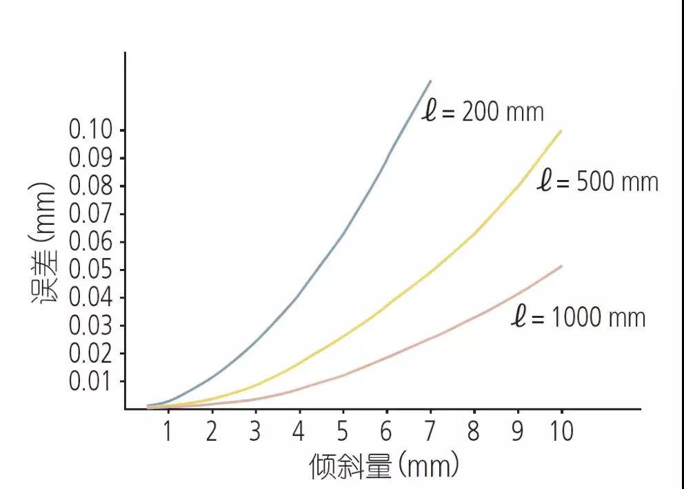 按圖1 所示,計算出向孔軸方向傾斜的誤差,可得出下圖的曲線。圖2 中相對軸孔向左右傾斜的誤差,與下圖的曲線大致相同,呈現負值。